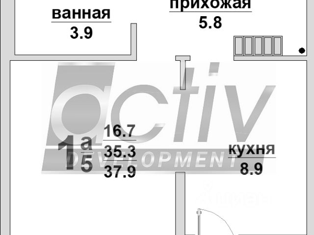 Общая площадь помещений с учетом лоджий 38,1 кв.метров.