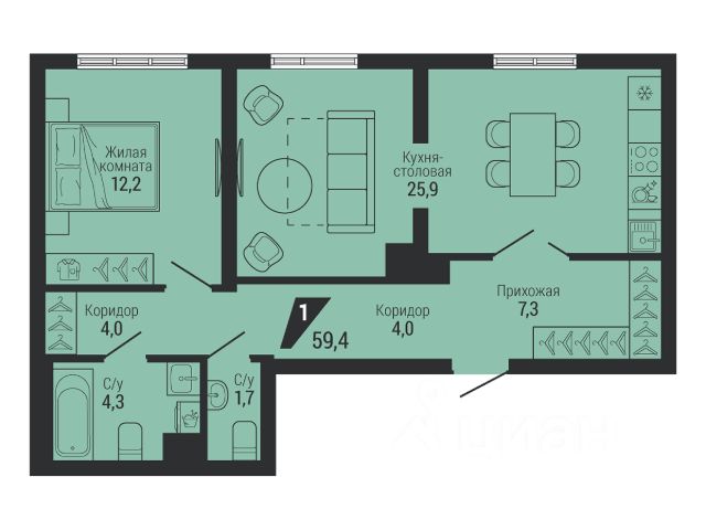 Квартира с кухней-гостиной и одной спальней в квартале "Депо". Особенности планировки: гардеробная, предчистовая отделка, балкон. квартиры в нашей базе: ДЕП07-Ж2.3.4. Квартал "Депо" расположен в активно развивающейся части Сортировки, на месте, где раньше был завод "Электротранс". Преимущества Сортировки — развитая инфраструктура. В пешей доступности — супермаркеты, остановки городского транспорта, поликлиники, детские сады, школы, гимназии, торговые центры, автоцентры, рынок с большим и доступным по стоимости выбором товаров, парк РЖД и парк с аттракционами Таганская Слобода. Квартал "Депо" расположен в границах улиц Пехотинцев — Таватуйская — Сортировочная — Новая (проектируется). Благоустройство квартала основано на трёх принципах. Первый — особое внимание к воде. Архитекторы Брусники создадут внутри застройки систему дождевых садов, которые будут фильтровать сток (в том числе с крыш зданий) и снижать нагрузку на ливневую канализацию . Второй принцип — разнообразие. Мы высадим на улицах ивы, липы, яблони разных сортов, спиреи, лапчатку и дерен, а во дворах — березы, липы, черёмухи, пузыреплодник, кизильник и манчжурский орех, который в Екатеринбурге почти не представлен. Третий принцип — зонирование. Центральный бульвар мы насытим площадками для игр детей и спокойного отдыха взрослых, на площади перед детским садом расположим окруженные деревьями плэйхабы, летние веранды кафе, открытое пространство с запоминающимся артом. #ZMzBD3 Продам 1-комнатную квартиру 60 м2 (квадратных метров) в Екатеринбурге.