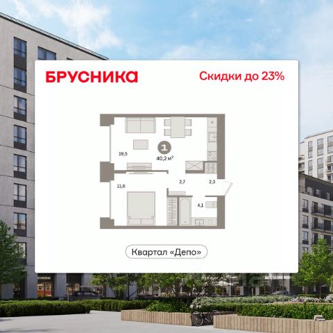 Квартира с кухней-гостиной и одной спальней в квартале "Депо". Особенности планировки: предчистовая отделка. квартиры в нашей базе: ДЕП07-Ж1.2.4. Квартал "Депо" расположен в активно развивающейся части Сортировки, на месте, где раньше был завод "Электротранс". Преимущества Сортировки — развитая инфраструктура. В пешей доступности — супермаркеты, остановки городского транспорта, поликлиники, детские сады, школы, гимназии, торговые центры, автоцентры, рынок с большим и доступным по стоимости выбором товаров, парк РЖД и парк с аттракционами Таганская Слобода. Квартал "Депо" расположен в границах улиц Пехотинцев — Таватуйская — Сортировочная — Новая (проектируется). Благоустройство квартала основано на трёх принципах. Первый — особое внимание к воде. Архитекторы Брусники создадут внутри застройки систему дождевых садов, которые будут фильтровать сток (в том числе с крыш зданий) и снижать нагрузку на ливневую канализацию . Второй принцип — разнообразие. Мы высадим на улицах ивы, липы, яблони разных сортов, спиреи, лапчатку и дерен, а во дворах — березы, липы, черёмухи, пузыреплодник, кизильник и манчжурский орех, который в Екатеринбурге почти не представлен. Третий принцип — зонирование. Центральный бульвар мы насытим площадками для игр детей и спокойного отдыха взрослых, на площади перед детским садом расположим окруженные деревьями плэйхабы, летние веранды кафе, открытое пространство с запоминающимся артом.