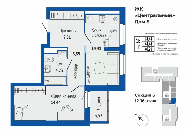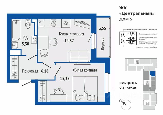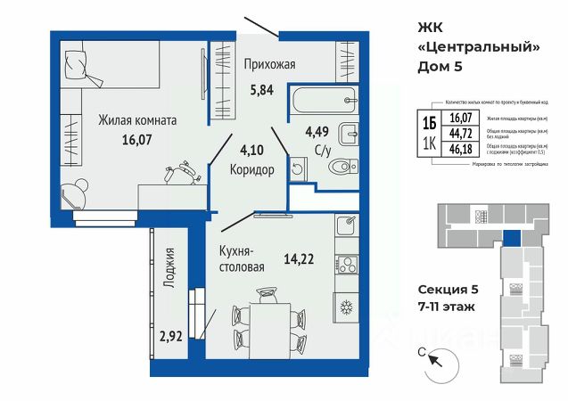 Продается 1-к квартира в жилом комплексе Центральный 5