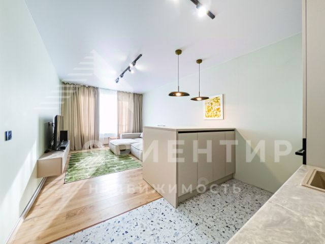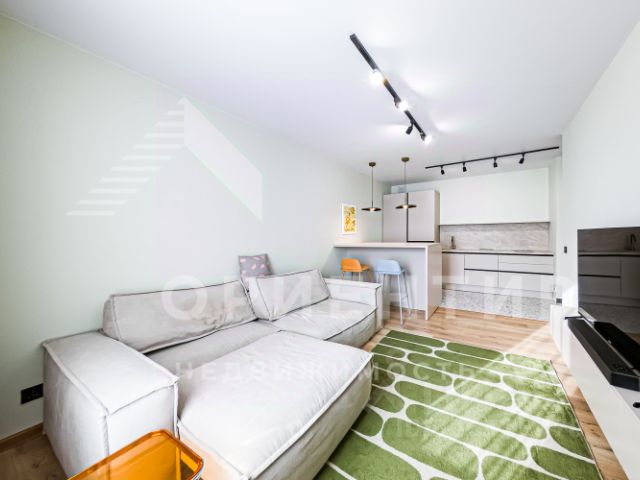 Квартира с кухней-гостиной и одной спальней в квартале "Траектория". Особенности планировки: балкон, вид во двор, предчистовая отделка.