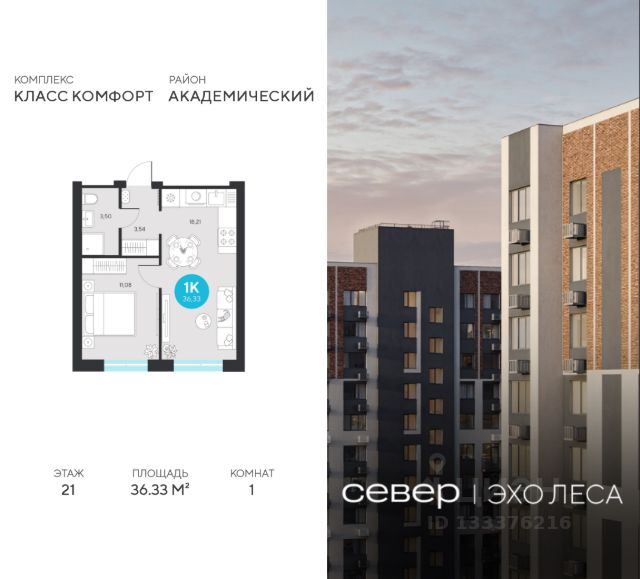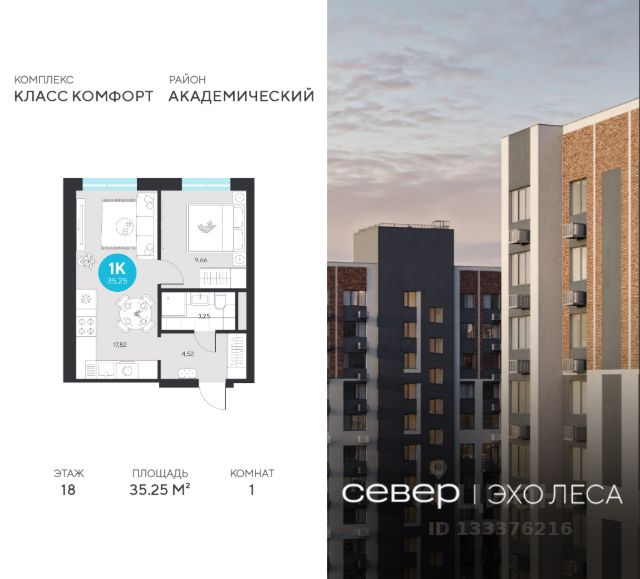 Продаётся квартира площадью 37.33 м2 в жилом комплексе "Эхо леса". Квартира находится на 8 этаже, жилая площадь квартиры 11.08 м2, площадь просторной кухни — 17.18 м2. Среди особенностей планировки — изолированные комнаты с окнами на одну сторону, 1 совмещённый санузел. Срок сдачи — I кв. 2028 Жилой комплекс "Эхо леса" — это: - дом в эко-стиле - двор с выходом в лесопарк - лаконичная архитектура - развитая инфраструктура вокруг квартала Инфраструктура В окружении проекта — вся необходимая инфраструктура: детские сады, школы, спортивный комплекс, продуктовые магазины, аптеки, кофейни, рестораны и салоны красоты. Благоустройство Концепция двора-парка продолжает тему леса. Ландшафт с продуманным всесезонным озеленением дополняют акценты: сухой ручей из камней, столы и навесы из натурального дерева, эко-тропы, фонтан и променад. Для взрослых предусмотрены пешеходные и велодорожки, для детей — игровые площадки для разных возрастов. Архитектура Переменная высота секций создаёт выразительный архитектурный облик. На фасадах — игра контрастных, при этом природных оттенков. Динамики зданию придают текстуры материалов: фактурной штукатурки и клинкерного кирпича. Лобби Интерьер в холле продолжает концепцию квартала и выполнен в эко стиле. В отделке используются элементы природных материалов с изображениями листвы и деревьев. Паркинг Тёплый подземный паркинг организован как единое пространство с собственным дизайном. Кладовые Индивидуальные помещения на техническом этаже — способ сохранить пространство в квартире. Попасть в кладовые можно на лифте. Планировки В продуманных планировках выделены тихие и шумные зоны. Приватные спальни и кабинеты спрятаны от маршрутов домашнего движения, а кухни-гостиные с барной стойкой вместо стены — всегда готовы к семейным праздникам. Из окон квартир открываются живописные виды на лес.