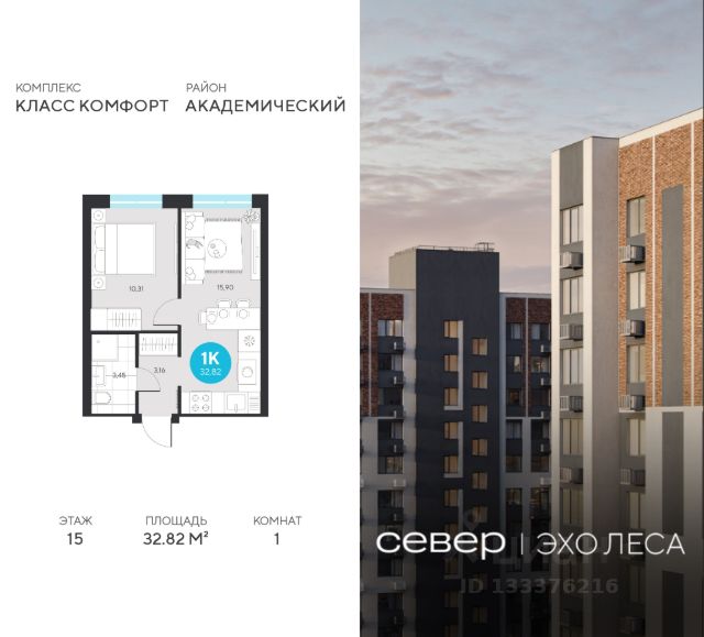 * Удобная планировка: кухня-гостиная 15,3 кв.м и комната 10,2 кв.м.