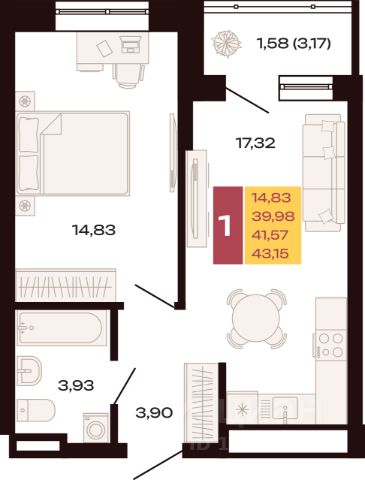 Общая площадь 35.53 м2 на 17 этаже. Этажей в доме: 28.
