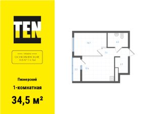 Продается 1-комн. квартира с предчистовой отделкой в ЖК "Квартал Траектория" на 5 этаже. Общая площадь: 35.4 кв.м., жилая: 9.4 кв.м., площадь просторной кухни-столовой: 16.2 кв.м. Все окна выходят на одну сторону. В квартире один балкон, один совмещенный санузел. Высота потолков 2.82 м.
