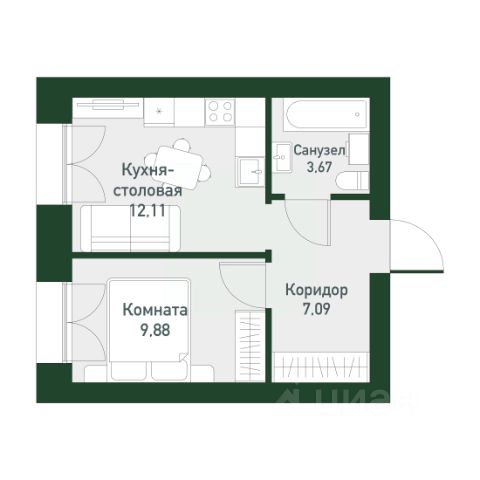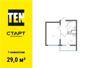 Продается 1-комн. квартира с предчистовой отделкой в ЖК "Соната Парк" на 7 этаже. Общая площадь: 35.81 кв.м. Высота потолков 2.72 м.