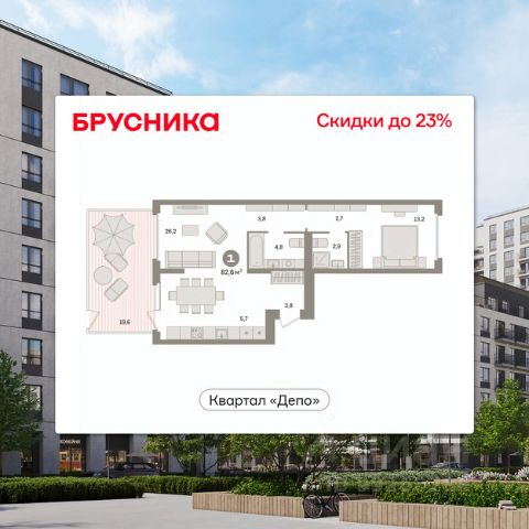 Квартира с кухней-гостиной и одной спальней в квартале "Депо". Особенности планировки: балкон, гардеробная, мастер-спальня, предчистовая отделка. квартиры в нашей базе: ДЕП07-Ж5.9.3. Квартал "Депо" расположен в активно развивающейся части Сортировки, на месте, где раньше был завод "Электротранс". Преимущества Сортировки — развитая инфраструктура. В пешей доступности — супермаркеты, остановки городского транспорта, поликлиники, детские сады, школы, гимназии, торговые центры, автоцентры, рынок с большим и доступным по стоимости выбором товаров, парк РЖД и парк с аттракционами Таганская Слобода. Квартал "Депо" расположен в границах улиц Пехотинцев — Таватуйская — Сортировочная — Новая (проектируется). Благоустройство квартала основано на трёх принципах. Первый — особое внимание к воде. Архитекторы Брусники создадут внутри застройки систему дождевых садов, которые будут фильтровать сток (в том числе с крыш зданий) и снижать нагрузку на ливневую канализацию . Второй принцип — разнообразие. Мы высадим на улицах ивы, липы, яблони разных сортов, спиреи, лапчатку и дерен, а во дворах — березы, липы, черёмухи, пузыреплодник, кизильник и манчжурский орех, который в Екатеринбурге почти не представлен. Третий принцип — зонирование. Центральный бульвар мы насытим площадками для игр детей и спокойного отдыха взрослых, на площади перед детским садом расположим окруженные деревьями плэйхабы, летние веранды кафе, открытое пространство с запоминающимся артом. Продается 1-комнатная квартира с двумя санузлами в Свердловской области.