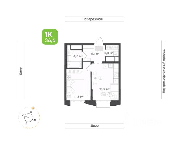 Удобство для молодой семьи Светлая и просторная кухня-гостиная — место, где утром приятно начинать день за чашкой кофе, а вечером собираться с друзьями. Открытая планировка создаёт ощущение свободы, а зона готовки продумана так, чтобы всё было под рукой Уютная спальня с окном в тихий двор гарантирует спокойствие и расслабление Современный санузел позволяет разместить всё необходимое для утреннего бодрящего душа или расслабляющей вечерней ванны В прихожей с системой хранения каждая вещь найдёт своё место