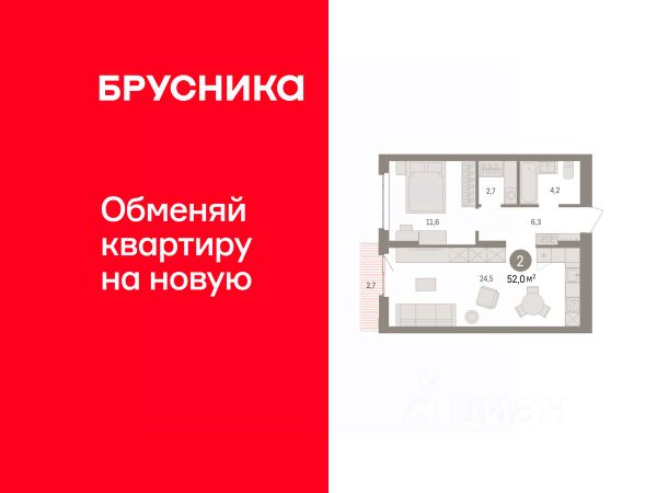 Успейте забронировать на этих условиях! Предложение ограничено! Стоимость квартиры указана со скидкой, ваша экономия составит 360,000 RUB. Информация по телефону, наши менеджеры вам все расскажут! Продается однокомнатная квартира от застройщика с предчистовой отделкой в ЖК "Квартал Траектория" на 10 этаже. Общая площадь: 52 кв.м., жилая: 11.6 кв.м., площадь просторной кухни-столовой: 24.5 кв.м. Все окна выходят на одну сторону. В квартире один балкон, один совмещенный санузел. Высота потолков 2.82 м. Дом монолитный, многоподъездный, переменной этажности, от 7 до 16 этажей. Квартира находится в 4-й секции высотой 16 этажей в корпусе 1-2. На этаже 7 квартир. В подъезде 1 пассажирский и 1 грузовой лифт. Начало строительства - 4 квартал 2025 года. Окончание строительства - 4 квартал 2027 года. Оформление сделки по договору долевого участия. Квартира с кухней-гостиной и одной спальней в квартале "Траектория". Особенности планировки: балкон, предчистовая отделка. квартиры в нашей базе: МНВ01-Ж12.10.7. Квартал "Траектория" строится в границах улиц Билимбаевской, Расточной, Монтажников и Маневровой Раньше здесь находился оборонный завод 5-ЦАРЗ, основанный в 1945 году. После войны он ремонтировал военную и грузовую технику — от "Виллисов" и "Студебекеров" до советских ЗИС-5 и ГАЗ-67. Сортировка — район с развитой инфраструктурой, обжитыми жилыми кварталами разных эпох и большим количеством парков. До центра Екатеринбурга — 20 минут на машине. Туда же можно отправиться на автобусе: ближайшая остановка общественного транспорта — в 4 минутах от "Траектории". Рядом с "Траекторией" расположены магазины, торговый центр, детские сады, школы, поликлиники и полезные сервисы, а также другой проект Брусники — квартал "Депо". Если хочется развлечений, можно отправиться в ТРЦ "Карнавал" и парк с аттракционами "Таганская слобода" — дорога туда займёт не более 10 минут на машине. Квартал "Траектория" — первый этап комплексного развития территории, которую раньше занимали производственные здания. На месте бывших цехов Брусника создаст дружелюбную среду и комфортное пешеходное пространство для всего района. Для озеленения квартала мы подобрали больше 60 видов растений: ольху, липу, клён, иву, грушу, вишню, сирень, барбарис, гортензию, смородину, ирис, декоративные травы. Они цветут в разное время года и постоянно меняют настроение двора. В "Траектории" мы предусмотрели несколько общественных пространств, открытых для всех горожан: встречающий сквер, лесопарк у храма и событийный сквер между домами. Когда захочется тишины и уединения, можно устроить прогулку во внутренних дворах: в них нет машин и посторонних, зато много зелени, света и мест для отдыха. Каждый двор в квартале "Траектория" — продолжение квартиры, только под открытым небом. Здесь можно прогуляться босиком по траве, устроить утреннюю йогу, почитать книгу в гамаке или отправить детей поиграть, не переживая за их безопасность. Мы закроем дворы от машин, чтобы создать безопасную сред