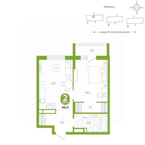 Эта квартира — образец функционала и практичности: встроенные ниши под шкафы эргономично организуют хранение, а высокие потолки подчеркивают ощущение простора. Здесь царит продуманный баланс — рациональная планировка и прозрачная логика пространства готовы служить вашим потребностям и создавать приятную среду для жизни. Квартира располагается в ЖК "Комсомольский" — жилом комплексе комфорт-класса. Здесь вы будете наслаждаться беззаботной жизнью, ведь ваш дом — воплощение практичности, безопасности и надежности. Для удобства предусмотрены колясочные на первых этажах домов, где можно оставить велосипеды и коляски в тепле. За безопасность отвечают система электронных ключей и видеонаблюдение. Еще здесь собственная котельная, поэтому в доме всегда будут горячая вода и оплата счетов только за фактически потребленное тепло. ПРЕИМУЩЕСТВА ЖК Красивые и функциональные парадные с мягкой и стильной зоной для отдыха, книгообменником, встроенными почтовыми ящиками и нишами для сумок Колясочные с доступом по ключу IP-домофоны Тихие лифты с плавным ходом О ПРОЕКТЕ ЖК "Комсомольский" строится в спокойном Кировском районе Екатеринбурга в границах улиц Сыромолотова — Рассветная — 40-лет Комсомола. Комплекс состоит из трех домов переменной этажности, которые выделяются динамичными линиями, выразительными фасадами и стильными лоджиями. ЛОКАЦИЯ Всё, что необходимо для повседневной жизни, находится недалеко от дома: школы, детские сады, продуктовые магазины, фитнес-клубы. Дорога до центра города на машине займет всего 10 минут — достаточно повернуть с улицы 40-летия Комсомола на улицу Владимира Высоцкого. Рядом с этим перекрестком начинается "Тропа здоровья" — большой терренкур вдоль "Каменных палаток". 10 мин до центра 3-4 минуты до школы No 82, гимназии No 176 4-5 минут до детских садов No 208, No 583, 266 20 мин до Свердловского областного медицинского колледжа и Центральной городской больницы No 7 В рамках стратегического развития района на первых этажах домов появятся коммерческие помещения, в которых откроются магазины и кафе. Следует учесть, что к 2030 году в Кировском районе планируется формирование регионального рекреационно-оздоровительного кластера, строительство ветки метро, расширение и модернизация старых промышленных зон социальной и бизнес-инфраструктуры, что приведет к созданию комфортной среды для жизни. Кроме того, в стратегию входит развитие Шарташского лесного парка как центра регионального и международного туризма. СПОСОБЫ ПОКУПКИ Ипотека: подберем выгодные условия в нескольких банках, чтобы вы могли выбрать лучшее Материнский капитал: можно использовать в качестве первоначального взноса Рассрочка: платите частями без % Сертификаты: позволяют оплатить часть стоимости квартиры О КОМПАНИИ "Паритет Девелопмент" — это современный и ответственный подход к реализации проектов в сфере жилищного строительства. Компания формирует среду, способную создать новое качество жизни для клиент