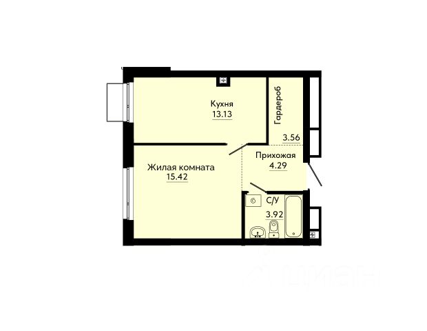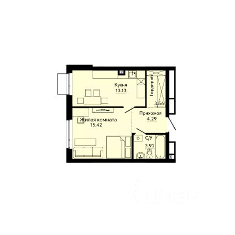 Квартира с кухней-гостиной и одной спальней в проекте Гоголя 21. Особенности планировки: свободная планировка.