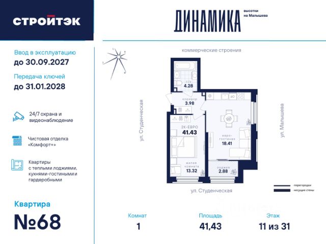 Продажа 1-комнатных квартир на 11 этаже в микрорайоне Втузгородок в городе Екатеринбург