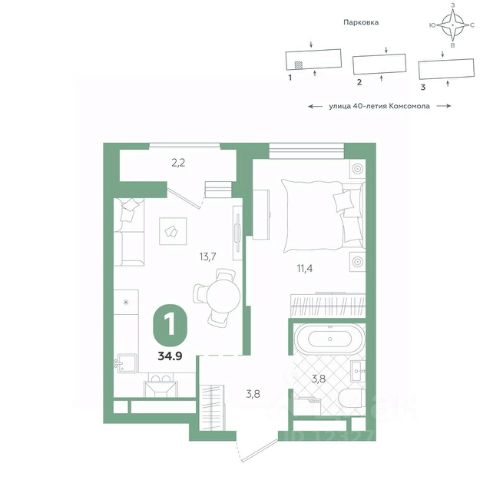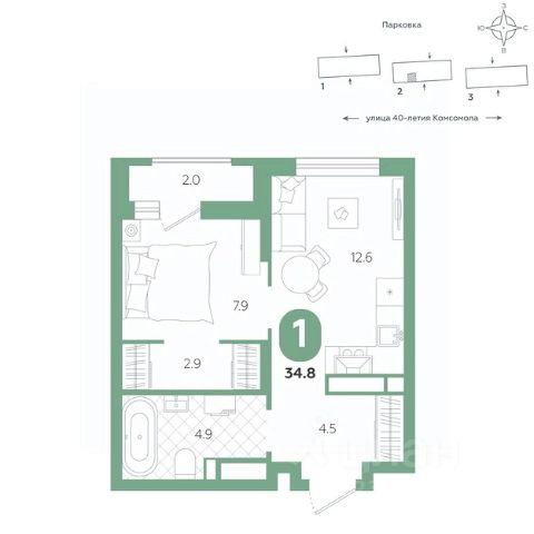 Эта квартира — образец функционала и практичности: встроенные ниши под шкафы эргономично организуют хранение, а высокие потолки подчеркивают ощущение простора. Здесь царит продуманный баланс — рациональная планировка и прозрачная логика пространства готовы служить вашим потребностям и создавать приятную среду для жизни. Квартира располагается в ЖК "Комсомольский" — жилом комплексе комфорт-класса. Здесь вы будете наслаждаться беззаботной жизнью, ведь ваш дом — воплощение практичности, безопасности и надежности. Для удобства предусмотрены колясочные на первых этажах домов, где можно оставить велосипеды и коляски в тепле. За безопасность отвечают система электронных ключей и видеонаблюдение. Еще здесь собственная котельная, поэтому в доме всегда будут горячая вода и оплата счетов только за фактически потребленное тепло. ПРЕИМУЩЕСТВА ЖК Красивые и функциональные парадные с мягкой и стильной зоной для отдыха, книгообменником, встроенными почтовыми ящиками и нишами для сумок Колясочные с доступом по ключу IP-домофоны Тихие лифты с плавным ходом О ПРОЕКТЕ ЖК "Комсомольский" строится в спокойном Кировском районе Екатеринбурга в границах улиц Сыромолотова — Рассветная — 40-лет Комсомола. Комплекс состоит из трех домов переменной этажности, которые выделяются динамичными линиями, выразительными фасадами и стильными лоджиями. ЛОКАЦИЯ Всё, что необходимо для повседневной жизни, находится недалеко от дома: школы, детские сады, продуктовые магазины, фитнес-клубы. Дорога до центра города на машине займет всего 10 минут — достаточно повернуть с улицы 40-летия Комсомола на улицу Владимира Высоцкого. Рядом с этим перекрестком начинается "Тропа здоровья" — большой терренкур вдоль "Каменных палаток". 10 мин до центра 3-4 минуты до школы No 82, гимназии No 176 4-5 минут до детских садов No 208, No 583, 266 20 мин до Свердловского областного медицинского колледжа и Центральной городской больницы No 7 В рамках стратегического развития района на первых этажах домов появятся коммерческие помещения, в которых откроются магазины и кафе. Следует учесть, что к 2030 году в Кировском районе планируется формирование регионального рекреационно-оздоровительного кластера, строительство ветки метро, расширение и модернизация старых промышленных зон социальной и бизнес-инфраструктуры, что приведет к созданию комфортной среды для жизни. Кроме того, в стратегию входит развитие Шарташского лесного парка как центра регионального и международного туризма. СПОСОБЫ ПОКУПКИ Ипотека: подберем выгодные условия в нескольких банках, чтобы вы могли выбрать лучшее Материнский капитал: можно использовать в качестве первоначального взноса Рассрочка: платите частями без % Сертификаты: позволяют оплатить часть стоимости квартиры О КОМПАНИИ "Паритет Девелопмент" — это современный и ответственный подход к реализации проектов в сфере жилищного строительства. Компания формирует среду, способную создать новое качество жизни для клиент