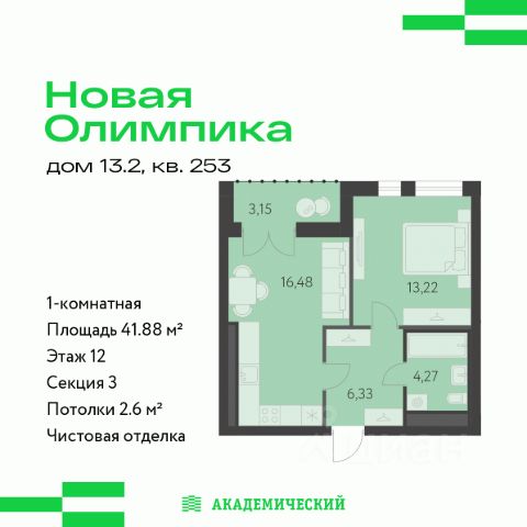 Предлагаю Вашему вниманию евро двухкомнатную квартиру в комфортабельном квартале "Брусника в Академическом", который расположен в одной из динамично развивающихся локаций города.
