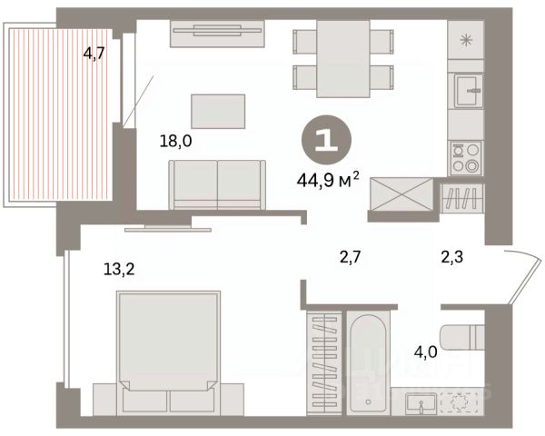 Квартира с кухней-гостиной и одной спальней в квартале "Депо". Особенности планировки: лоджия, предчистовая отделка. квартиры в нашей базе: ДЕП07-Ж1.12.3. Квартал "Депо" расположен в активно развивающейся части Сортировки, на месте, где раньше был завод "Электротранс". Преимущества Сортировки — развитая инфраструктура. В пешей доступности — супермаркеты, остановки городского транспорта, поликлиники, детские сады, школы, гимназии, торговые центры, автоцентры, рынок с большим и доступным по стоимости выбором товаров, парк РЖД и парк с аттракционами Таганская Слобода. Квартал "Депо" расположен в границах улиц Пехотинцев — Таватуйская — Сортировочная — Новая (проектируется). Благоустройство квартала основано на трёх принципах. Первый — особое внимание к воде. Архитекторы Брусники создадут внутри застройки систему дождевых садов, которые будут фильтровать сток (в том числе с крыш зданий) и снижать нагрузку на ливневую канализацию . Второй принцип — разнообразие. Мы высадим на улицах ивы, липы, яблони разных сортов, спиреи, лапчатку и дерен, а во дворах — березы, липы, черёмухи, пузыреплодник, кизильник и манчжурский орех, который в Екатеринбурге почти не представлен. Третий принцип — зонирование. Центральный бульвар мы насытим площадками для игр детей и спокойного отдыха взрослых, на площади перед детским садом расположим окруженные деревьями плэйхабы, летние веранды кафе, открытое пространство с запоминающимся артом. #2SCmF1