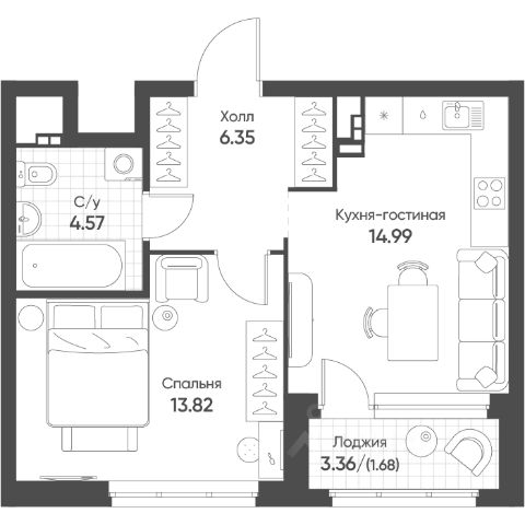 Окна квартиры выходят во двор, лоджия с панорамным остеклением, в подарок новому собственнику останется кухонный гарнитур с варочной поверхностью и духовым шкафом, стол и стулья в гостиной, двуспальная кровать. В доме добрые и приветливые соседи. Закрытый зеленый двор с видеонаблюдением, без машин, с современными детскими и спортивными площадками для любого возраста.