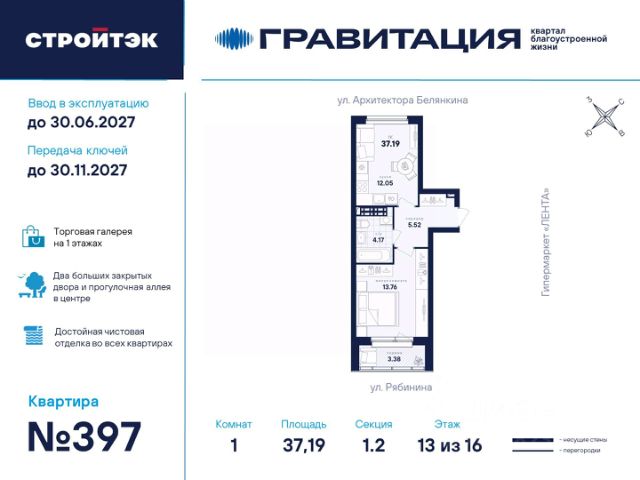 Продаётся 1-комнатная квартира в строящемся доме (Дом 5), срок сдачи: III-кв. 2028, общей площадью 27.7 кв.м., на 13 этаже. ЖК "Белая башня" - дома с примечательной архитектурой в сердце района Уралмаш. Комплекс расположен вблизи ведущих транспортных линий: ул. Донбасская и ул. Машиностроителей. "Белую башню" отличает развитая инфраструктура в сочетании с природными и историческими богатствами: рядом парк Победы, озеро Шувакиш, водонапорная "Белая башня". В пешей доступности несколько школ, детских садов, кафе и магазинов. Есть спортивная школа по дзюдо и самбо, лыжная база, спортивный комплекс "Олимп" и домашняя тренировочная арена ФК "Урал" - "СКБ-Банк Арена". В 5 минутах ходьбы ГКБ 14 и один из лучших диагностических центров области. Рядом с домом остановки трамваев, троллейбусов и автобусов. ЖК "Белая башня" - продуманное пространство внутри двора и функциональные планировки. Выбирайте квартиру на любой вкус: от студии до трехкомнатной. Трехсекционный жилой дом переменной этажности - это первая очередь строительства. Главное преимущество проекта - это комплексная застройка, за счет чего можно организовать пространство комплекса наиболее комфортным образом. Окончание строительства: 4 квартал 2020 Яркое сочетания современности и конструктивизма Примечательная современная архитектура комплекса с сохранением идей конструктивизма. На торцах дома будет стилизованное изображение легендарной Белой башни. Яркая отделка подъездов в фирменном стиле создают запоминающийся образ жилого комплекса "Белая башня". Жить в ярком доме - жить яркой жизнью.Современные технологии строительстваВысокое качество строительства обеспечивает жесткий контроль со стороны экспертов и государственных органов. Независимые друг от друга отделы технадзора технического заказчика проекта и генерального подрядчика проводят мониторинг строительства ЖК "Белая башня". Кроме того, эксперты проверяют стройматериалы, выполненные работы в несколько этапов. К примеру, бетон тестируют при доставке на стройплощадку и после набора прочности.Отделка квартиры от застройщика в подарокГотовая квартира значительно упрощает переезд в новое жильё. Квартиры в ЖК "Белая башня" сдаются с чистовой отделкой. Выровненные стены, пол и потолок; на полу ламинат, на стенах обои под покраску, установлены межкомнатные и входные двери, в ванной - сантехника и плитка. При отделке квартиры мы тщательно подходим к выбору отделочных материалов и их поставщиков. В квартирах улучшенная шумоизоляция.Закрытый двор без машинБезопасность маленьких жителей ЖК "Белая башня" - важная составляющая концепции. Архитектурное решение проекта позволило создать безопасный закрытый от машин двор с улучшенными детскими площадками. Для спокойствия родителей и радости их детей.Современная клиника во двореИнфраструктура - одно из преимуществ "Белой башни". В первом доме комплекса расположится современная клиника "Здоровье 365", отличающаяся своим качественным подходом. Функциональные планировкиКвартиры комплекса "Белая башня" - э Продается 1-комнатная квартира на 13 этаже в Екатеринбурге.