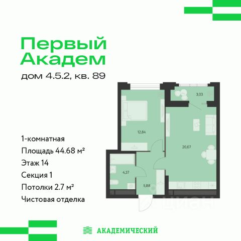 Пpодаетcя однокомнатная кваpтира 46.1м. ( евро-двушкa), на 14 этaже, кирпичного домa ( cпецпpoeкт).