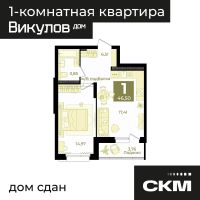 Продаётся 1-комнатная квартира в строящемся доме (Дом 1 секции 1-5), срок сдачи: II-кв. 2026, общей площадью 40.8 кв.м., на 14 этаже. Дом комфорт-класса на песчаном берегу Верх-Исетского пруда.