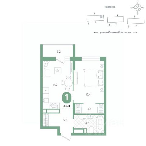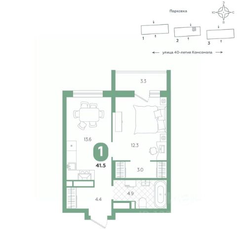 Квартира располагается в ЖК "Комсомольский" — жилом комплексе комфорт-класса. Здесь вы будете наслаждаться беззаботной жизнью, ведь ваш дом — воплощение практичности, безопасности и надежности. Для удобства предусмотрены колясочные на первых этажах домов, где можно оставить велосипеды и коляски в тепле. За безопасность отвечают система электронных ключей и видеонаблюдение. Еще здесь собственная котельная, поэтому в доме всегда будут горячая вода и оплата счетов только за фактически потребленное тепло.