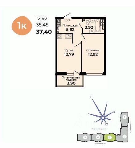 ЖК "Тихий центр-4", 1 секция, 1 секция, Квартира 121