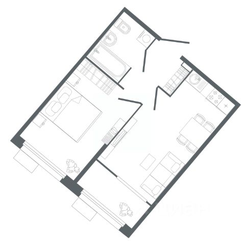 Отделка под чистовую. В санузле — монолитный потолок, на полу — гидроизоляция и стяжка, стены оштукатурены. В одном санузле установлены унитаз и раковина. В остальных помещениях потолок — монолит, на полу — стяжка, стены оштукатурены.