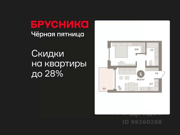 Арт. 117577711 В продаже или на ОБМЕН уютная 1-комнатная (ЕВРО-2) квартира в мкр. Солнечный (Солнечные кварталы от Форум-групп)