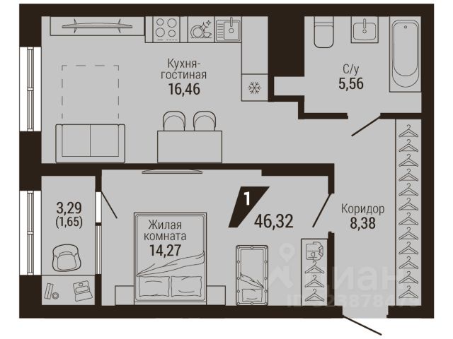 Продаётся 1-комнатная квартира в строящемся доме (Дом 1 секции 1-5), срок сдачи: II-кв. 2026, общей площадью 48.5 кв.м., на 15 этаже. Дом комфорт-класса на песчаном берегу Верх-Исетского пруда.