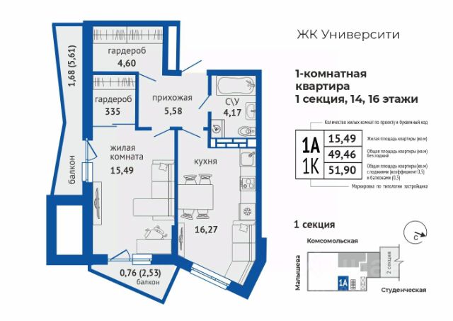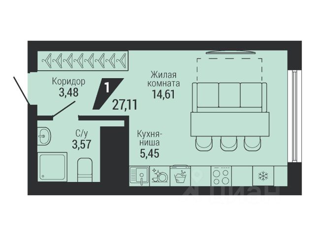 Первый этап — секция 7.1, башня в 25 этажей. Здесь 246 квартир в 19 уникальных планировках от студий до 3-комнатных, в классических и евро-вариантах. Просторные кухни-гостиные, гардеробные и окна на 2 стороны — лишь часть их плюсов.