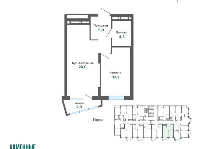 Квартира с кухней-гостиной и одной спальней в квартале "Депо". Особенности планировки: гардеробная, вид во двор, предчистовая отделка.