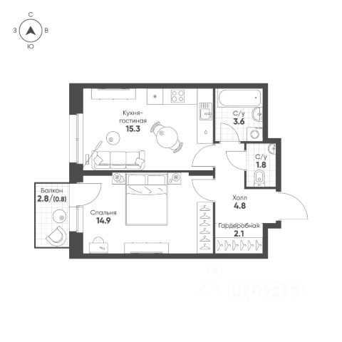 ПРОДАМ очень светлую и уютную Евро 2-х комнатную квартиру с большой кухней-гостиной и вместительной спальней в самом молодом микрорайоне Екатеринбурга.