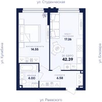 Однокомнатная квартира с лоджией на 4 этаже, большая кухня-гостиная. Окна выходят на ул. Гагарина. Чистовая отделка под ключ. Дом в 15 минутах от центра города. Рядом остановки общественного транспорта, школы и детские сады.