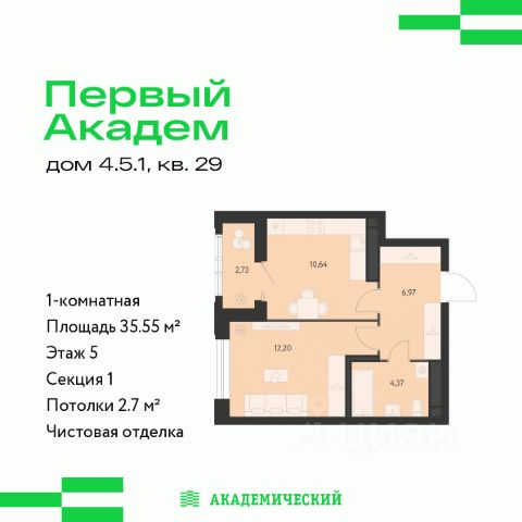 Квартира с кухней-гостиной и одной спальней в Бруснике в Академическом. Особенности планировки: вид во двор, предчистовая отделка, балкон. квартиры в нашей базе: АКД05-Ж8.5.1. Квартал "Брусника в Академическом" расположен в границах улиц Ландау — Новая. Сегодня Академический — молодой, стремительно развивающийся район, обеспеченный всей необходимой инфраструктурой. С центром его связывают две магистральные улицы — Вильгельма де Геннина и Амундсена. Последняя в перспективе соединится с ЕКАДом, что позволит жителям быстрее выезжать из города. Согласно утвержденному проекту планировки территории в пешеходной доступности от квартала Брусники появятся две школы, рассчитанные на 1700 мест, и шесть детских садов. Рядом со строящимися домами расположены две крупные зелёные зоны — Юго-Западный лесопарк и Преображенский парк. В школах раиона совместно с учеными УрО РАН будет реализован проект "Малая академия наук", предпогагающий регулярные экскурсии в отраслевые институты и лаборатории, участие в научных конференциях и мастер-классах. Также в Академическом уже построены, теннисная академия и дворец дзюдо, крупные ТРЦ "Краснолесье" и ТРЦ "Академический", гипермаркет "Лента", в планах — организация ИT-кластера и новых филиалов НИИ. Камерные дворы квартала закрыты от машин. По нашим стандартам 70% их территории покрывает зелень. Деревья, кустарники и травы подобраны таким образом, чтобы в каждый сезон двор оставался красивым и имел свой цвет. Каждый двор разделён на зоны. В одной расположены детские площадки, в другой — места для спорта и тихого отдыха взрослых. Особенность ландшафта дворов — дождевые сады, снижающие нагрузку на ливневую канализацию. Они впитывают сток с крыш и тротуаров, фильтруют его в специально подобранном субстрате и отправляют в пруд. #2SOSwe