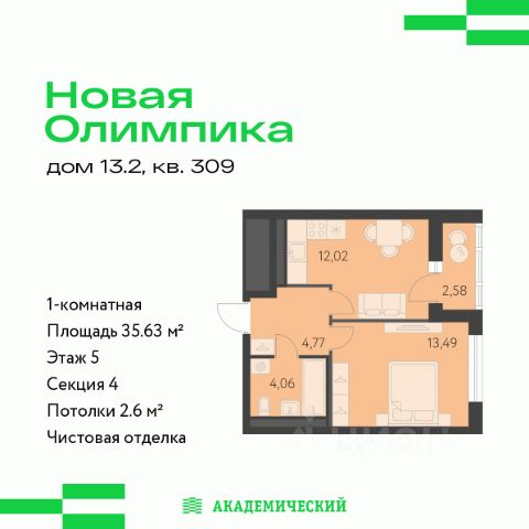 Квартира с кухней-гостиной и одной спальней в Бруснике в Академическом. Особенности планировки: балкон, предчистовая отделка. квартиры в нашей базе: АКД04-Ж2.5.2. Квартал "Брусника в Академическом" расположен в границах улиц Ландау — Новая. Сегодня Академический — молодой, стремительно развивающийся район, обеспеченный всей необходимой инфраструктурой. С центром его связывают две магистральные улицы — Вильгельма де Геннина и Амундсена. Последняя в перспективе соединится с ЕКАДом, что позволит жителям быстрее выезжать из города. Согласно утвержденному проекту планировки территории в пешеходной доступности от квартала Брусники появятся две школы, рассчитанные на 1700 мест, и шесть детских садов. Рядом со строящимися домами расположены две крупные зелёные зоны — Юго-Западный лесопарк и Преображенский парк. В школах раиона совместно с учеными УрО РАН будет реализован проект "Малая академия наук", предпогагающий регулярные экскурсии в отраслевые институты и лаборатории, участие в научных конференциях и мастер-классах. Также в Академическом уже построены, теннисная академия и дворец дзюдо, крупные ТРЦ "Краснолесье" и ТРЦ "Академический", гипермаркет "Лента", в планах — организация ИT-кластера и новых филиалов НИИ. Камерные дворы квартала закрыты от машин. По нашим стандартам 70% их территории покрывает зелень. Деревья, кустарники и травы подобраны таким образом, чтобы в каждый сезон двор оставался красивым и имел свой цвет. Каждый двор разделён на зоны. В одной расположены детские площадки, в другой — места для спорта и тихого отдыха взрослых. Особенность ландшафта дворов — дождевые сады, снижающие нагрузку на ливневую канализацию. Они впитывают сток с крыш и тротуаров, фильтруют его в специально подобранном субстрате и отправляют в пруд. #268Dm4