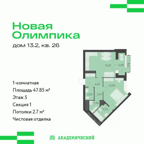Квартира с кухней-гостиной и одной спальней в Бруснике в Академическом. Особенности планировки: вид во двор, предчистовая отделка, балкон. квартиры в нашей базе: АКД05-Ж8.5.1. Квартал "Брусника в Академическом" расположен в границах улиц Ландау — Новая. Сегодня Академический — молодой, стремительно развивающийся район, обеспеченный всей необходимой инфраструктурой. С центром его связывают две магистральные улицы — Вильгельма де Геннина и Амундсена. Последняя в перспективе соединится с ЕКАДом, что позволит жителям быстрее выезжать из города. Согласно утвержденному проекту планировки территории в пешеходной доступности от квартала Брусники появятся две школы, рассчитанные на 1700 мест, и шесть детских садов. Рядом со строящимися домами расположены две крупные зелёные зоны — Юго-Западный лесопарк и Преображенский парк. В школах раиона совместно с учеными УрО РАН будет реализован проект "Малая академия наук", предпогагающий регулярные экскурсии в отраслевые институты и лаборатории, участие в научных конференциях и мастер-классах. Также в Академическом уже построены, теннисная академия и дворец дзюдо, крупные ТРЦ "Краснолесье" и ТРЦ "Академический", гипермаркет "Лента", в планах — организация ИT-кластера и новых филиалов НИИ. Камерные дворы квартала закрыты от машин. По нашим стандартам 70% их территории покрывает зелень. Деревья, кустарники и травы подобраны таким образом, чтобы в каждый сезон двор оставался красивым и имел свой цвет. Каждый двор разделён на зоны. В одной расположены детские площадки, в другой — места для спорта и тихого отдыха взрослых. Особенность ландшафта дворов — дождевые сады, снижающие нагрузку на ливневую канализацию. Они впитывают сток с крыш и тротуаров, фильтруют его в специально подобранном субстрате и отправляют в пруд. #Z5OsWe