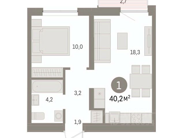 количество комнат - 1