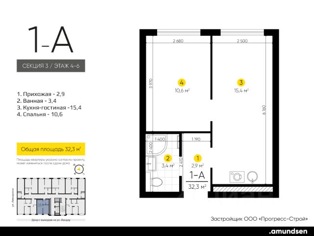 В проекте представлены студии, классические одно- и двухкомнатные варианты, а также двух-, трех- и четырехкомнатные квартиры в евроформате площадью от 25,32 до 76,65.