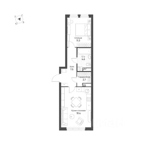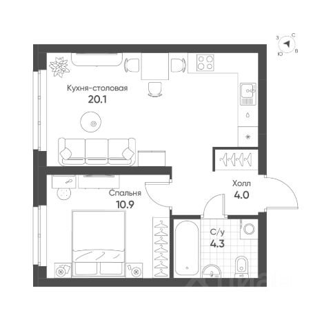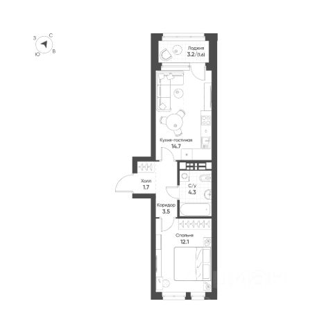 * Удобная планировка: кухня-гостиная 15,3 кв.м и комната 10,2 кв.м.