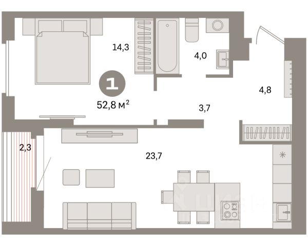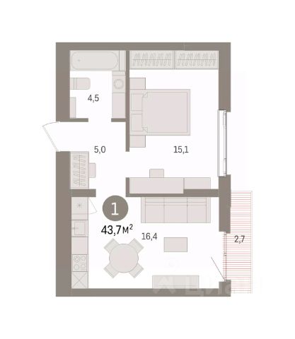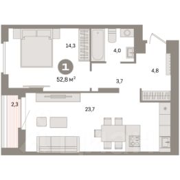 Просторная однокомнатная квартира с предчистовой отделкой в ЖК "Квартал Траектория" на 5 этаже. Общая площадь: 45.4 кв.м., жилая: 14.1 кв.м., площадь просторной кухни-столовой: 15.1 кв.м. Все окна выходят на одну сторону. В квартире один балкон, один совмещенный санузел. Высота потолков 2.82 м. Дом монолитный, многоподъездный, переменной этажности, от 7 до 16 этажей. Квартира находится в 4-й секции высотой 16 этажей в корпусе 1-2. На этаже 7 квартир. В подъезде 1 пассажирский и 1 грузовой лифт. Начало строительства - 4 квартал 2025 года. Окончание строительства - 4 квартал 2027 года. Оформление сделки по договору долевого участия. Квартира с кухней-гостиной и одной спальней в квартале "Траектория". Особенности планировки: гардеробная, предчистовая отделка, балкон. квартиры в нашей базе: МНВ01-Ж12.5.5. Квартал "Траектория" строится в границах улиц Билимбаевской, Расточной, Монтажников и Маневровой Раньше здесь находился оборонный завод 5-ЦАРЗ, основанный в 1945 году. После войны он ремонтировал военную и грузовую технику — от "Виллисов" и "Студебекеров" до советских ЗИС-5 и ГАЗ-67. Сортировка — район с развитой инфраструктурой, обжитыми жилыми кварталами разных эпох и большим количеством парков. До центра Екатеринбурга — 20 минут на машине. Туда же можно отправиться на автобусе: ближайшая остановка общественного транспорта — в 4 минутах от "Траектории". Рядом с "Траекторией" расположены магазины, торговый центр, детские сады, школы, поликлиники и полезные сервисы, а также другой проект Брусники — квартал "Депо". Если хочется развлечений, можно отправиться в ТРЦ "Карнавал" и парк с аттракционами "Таганская слобода" — дорога туда займёт не более 10 минут на машине. Квартал "Траектория" — первый этап комплексного развития территории, которую раньше занимали производственные здания. На месте бывших цехов Брусника создаст дружелюбную среду и комфортное пешеходное пространство для всего района. Для озеленения квартала мы подобрали больше 60 видов растений: ольху, липу, клён, иву, грушу, вишню, сирень, барбарис, гортензию, смородину, ирис, декоративные травы. Они цветут в разное время года и постоянно меняют настроение двора. В "Траектории" мы предусмотрели несколько общественных пространств, открытых для всех горожан: встречающий сквер, лесопарк у храма и событийный сквер между домами. Когда захочется тишины и уединения, можно устроить прогулку во внутренних дворах: в них нет машин и посторонних, зато много зелени, света и мест для отдыха. Каждый двор в квартале "Траектория" — продолжение квартиры, только под открытым небом. Здесь можно прогуляться босиком по траве, устроить утреннюю йогу, почитать книгу в гамаке или отправить детей поиграть, не переживая за их безопасность. Мы закроем дворы от машин, чтобы создать безопасную среду для отдыха. Применим натуральные материалы в отделке малых архитектурных форм — дерево, камень, металл без лишней обработки. Внутри каждого двора — детские площадки, перголы с тенистыми зонами, мягки