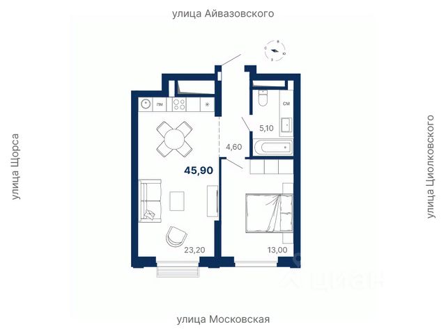 Окна кухни и комнаты выходят на восточную сторону, двор закрытый, под охраной, в подъезде на первом этаже консьерж, парковка во дворе, 15 минут пешком до метро Чкаловская.