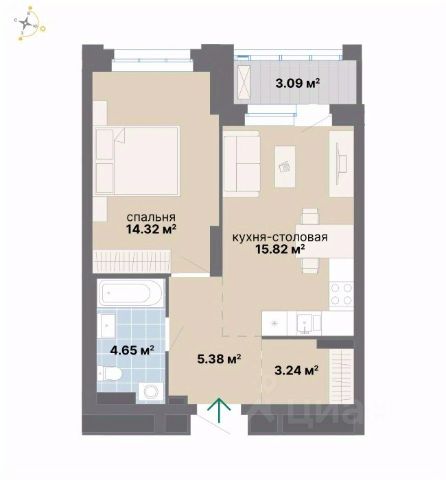 Продaeтcя 1-комнaтная квартиpa 43м² на 6 этаже 18-этажного дома!