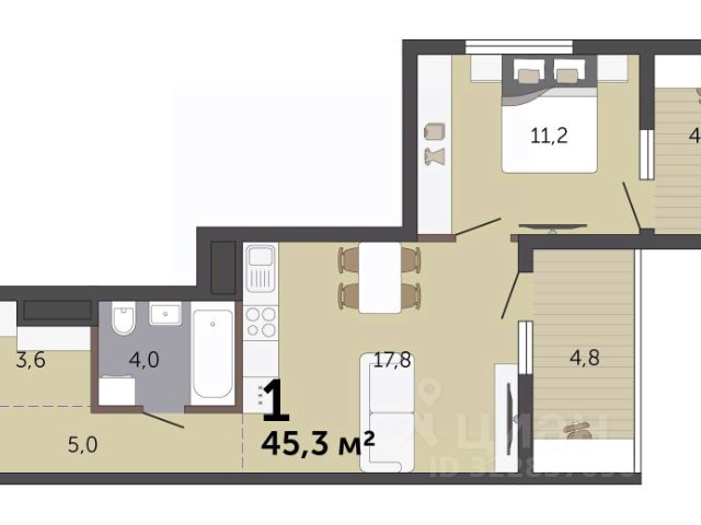 Продаётся 1-комнатная квартира в строящемся доме (Дом 6), срок сдачи: III-кв. 2027, общей площадью 45.7 кв.м., на 6 этаже. Расположение, транспортная доступность Жилой комплекс "Малевич" включает в себя пять монолитных односекционных зданий класса "комфорт" высотой от 26 до 34 этажей. Каждый из домов комплекса имеет свой цвет (красный, желтый, зеленый, оранжевый, синий). На создание архитектурной концепции комплекса ее авторов вдохновили идеи супрематизма от основоположника этого направления абстрактного искусства - Казимира Малевича. Пять зданий "Малевича" располагаются в микрорайоне Пионерский, рядом с Проспектом Космонавтов и улицей Маяковского, на расстоянии менее одного километра от метро "Уральская", железнодорожного вокзала "Екатеринбург-Пасс.", Северного автовокзала и Привокзальной площади; в полутора километрах от метро "Динамо", примерно в трех километрах от исторического центра города. Инфраструктура Собственная инфраструктура комплекса включает в себя располагающиеся на первых этажах зданий: детский клуб, фитнес-центр, ресторан и гастроном. Рядом с "Малевичем" и в радиусе двух километров от него находятся: детский клуб "Озорляндия", детские сады 106, 91, 230, школы 146, 3, гимназия 47, Гуманитарный университет, гипермаркет "Лента", гастроном "Мегамарт", бизнес-центр "Форт", торгово-развлекательный центр "Парк хаус" с гипермаркетом "Карусель", кафе, ресторанами и кинотеатром, фитнес-центром и детскими аттракционами, торговые центры "Свердловск", "Олимп", "Чайка", магазин сети "Курико", торгово-офисный центр Active Park, супермаркеты "Магнит", "Дикси", фитнес-клуб "Пионер". Чуть далее располагаются: центральная городская больница 3, гипермаркет OBI, Дворец культуры железнодорожников, "Ельцин Центр", кинотеатр "Космос", спорткомплексы "ДИВС" и "Динамо", ТЮЗ и другие культурные достопримечательности центральной части города. Экологическая ситуация в районе считается удовлетворительной. Рядом с "Малевичем" проходят проспект Космонавтов и железная дорога, располагаются промзоны и оптовые базы. Недалеко расположена зеленая зона - Основинский парк. Из окон зданий открываются виды на центральную часть города, железнодорожный вокзал и Верх-Исетский пруд. Надежность застройщика Жилой комплекс "Малевич" построила созданная в 2007 году екатеринбургская компания Prinzip. Это одна из самых оригинальных компаний на строительном рынке в уральской столице. Каждый ее проект уникален с точки зрения архитектуры и концепции. Самые известные проекты Prinzip в родном городе, помимо "Малевича" - жилой квартал "Ньютон Парк", жилой дом "Победа", жилой комплекс "Дом на Максима Горького, 17", малоэтажный поселок "Светлореченский", штаб-квартира банка "Кольцо Урала", торговый центр "Европа", деловой центр "Суворов", бизнес-центр Aurora. Проект "Малевича" был разработан "Проектным бюро Р1" и архитектурным бюро "ОСА". Основные строительно-монтажные работы при возведении пяти зданий комплекса выполнила компания "Альфа-Строй". Архитектура В пяти здани
