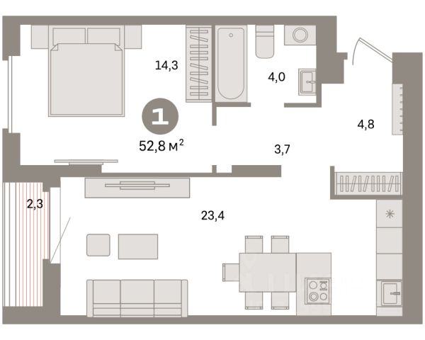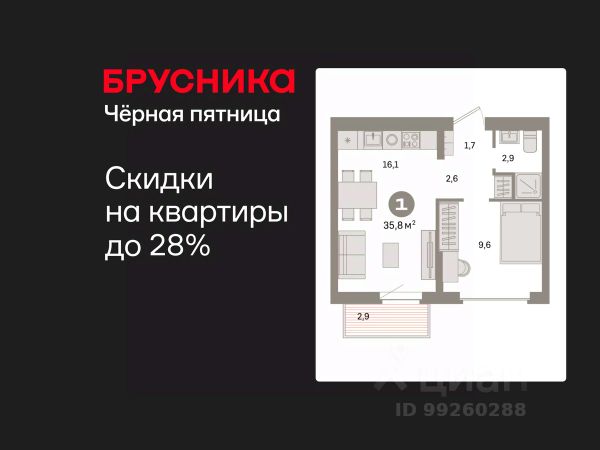 Продается однокомнатная квартира от застройщика с предчистовой отделкой в ЖК "Квартал Траектория" на 6 этаже. Общая площадь: 42.4 кв.м., жилая: 12 кв.м., площадь просторной кухни-столовой: 17.7 кв.м. Все окна выходят на одну сторону. В квартире одна лоджия, один совмещенный санузел. Высота потолков 2.82 м. Дом монолитный, многоподъездный, переменной этажности, от 7 до 25 этажей. Квартира находится в 3-й секции высотой 16 этажей в корпусе 1-1. На этаже 7 квартир. В подъезде 1 пассажирский и 1 грузовой лифт. Начало строительства - 4 квартал 2025 года. Окончание строительства - 4 квартал 2027 года. Оформление сделки по договору долевого участия. Квартира с кухней-гостиной и одной спальней в квартале "Траектория". Особенности планировки: гардеробная, лоджия, предчистовая отделка. квартиры в нашей базе: МНВ01-Ж3.6.2. Квартал "Траектория" строится в границах улиц Билимбаевской, Расточной, Монтажников и Маневровой Раньше здесь находился оборонный завод 5-ЦАРЗ, основанный в 1945 году. После войны он ремонтировал военную и грузовую технику — от "Виллисов" и "Студебекеров" до советских ЗИС-5 и ГАЗ-67. Сортировка — район с развитой инфраструктурой, обжитыми жилыми кварталами разных эпох и большим количеством парков. До центра Екатеринбурга — 20 минут на машине. Туда же можно отправиться на автобусе: ближайшая остановка общественного транспорта — в 4 минутах от "Траектории". Рядом с "Траекторией" расположены магазины, торговый центр, детские сады, школы, поликлиники и полезные сервисы, а также другой проект Брусники — квартал "Депо". Если хочется развлечений, можно отправиться в ТРЦ "Карнавал" и парк с аттракционами "Таганская слобода" — дорога туда займёт не более 10 минут на машине. Квартал "Траектория" — первый этап комплексного развития территории, которую раньше занимали производственные здания. На месте бывших цехов Брусника создаст дружелюбную среду и комфортное пешеходное пространство для всего района. Для озеленения квартала мы подобрали больше 60 видов растений: ольху, липу, клён, иву, грушу, вишню, сирень, барбарис, гортензию, смородину, ирис, декоративные травы. Они цветут в разное время года и постоянно меняют настроение двора. В "Траектории" мы предусмотрели несколько общественных пространств, открытых для всех горожан: встречающий сквер, лесопарк у храма и событийный сквер между домами. Когда захочется тишины и уединения, можно устроить прогулку во внутренних дворах: в них нет машин и посторонних, зато много зелени, света и мест для отдыха. Каждый двор в квартале "Траектория" — продолжение квартиры, только под открытым небом. Здесь можно прогуляться босиком по траве, устроить утреннюю йогу, почитать книгу в гамаке или отправить детей поиграть, не переживая за их безопасность. Мы закроем дворы от машин, чтобы создать безопасную среду для отдыха. Применим натуральные материалы в отделке малых архитектурных форм — дерево, камень, металл без лишней обработки. Внутри каждого двора — детские площадки, перголы с тенистыми зо