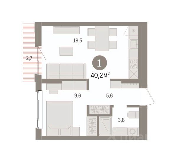 1-комн. квартира от застройщика с предчистовой отделкой в ЖК "Квартал Траектория" на 6 этаже. Общая площадь: 40.2 кв.м., жилая: 9.6 кв.м., площадь просторной кухни-столовой: 18.5 кв.м. Все окна выходят на одну сторону. В квартире один балкон, один совмещенный санузел. Высота потолков 2.82 м. Дом монолитный, многоподъездный, переменной этажности, от 7 до 25 этажей. Квартира находится в 5-й секции высотой 9 этажей в корпусе 1-1. На этаже 9 квартир. В подъезде 1 пассажирский и 1 грузовой лифт. Начало строительства - 4 квартал 2025 года. Окончание строительства - 4 квартал 2027 года. Оформление сделки по договору долевого участия. Квартира с кухней-гостиной и одной спальней в квартале "Траектория". Особенности планировки: балкон, предчистовая отделка. квартиры в нашей базе: ТРА01-Ж5.6.7. Квартал "Траектория" строится в границах улиц Билимбаевской, Расточной, Монтажников и Маневровой Раньше здесь находился оборонный завод 5-ЦАРЗ, основанный в 1945 году. После войны он ремонтировал военную и грузовую технику — от "Виллисов" и "Студебекеров" до советских ЗИС-5 и ГАЗ-67. Сортировка — район с развитой инфраструктурой, обжитыми жилыми кварталами разных эпох и большим количеством парков. До центра Екатеринбурга — 20 минут на машине. Туда же можно отправиться на автобусе: ближайшая остановка общественного транспорта — в 4 минутах от "Траектории". Рядом с "Траекторией" расположены магазины, торговый центр, детские сады, школы, поликлиники и полезные сервисы, а также другой проект Брусники — квартал "Депо". Если хочется развлечений, можно отправиться в ТРЦ "Карнавал" и парк с аттракционами "Таганская слобода" — дорога туда займёт не более 10 минут на машине. Квартал "Траектория" — первый этап комплексного развития территории, которую раньше занимали производственные здания. На месте бывших цехов Брусника создаст дружелюбную среду и комфортное пешеходное пространство для всего района. Для озеленения квартала мы подобрали больше 60 видов растений: ольху, липу, клён, иву, грушу, вишню, сирень, барбарис, гортензию, смородину, ирис, декоративные травы. Они цветут в разное время года и постоянно меняют настроение двора. В "Траектории" мы предусмотрели несколько общественных пространств, открытых для всех горожан: встречающий сквер, лесопарк у храма и событийный сквер между домами. Когда захочется тишины и уединения, можно устроить прогулку во внутренних дворах: в них нет машин и посторонних, зато много зелени, света и мест для отдыха. Каждый двор в квартале "Траектория" — продолжение квартиры, только под открытым небом. Здесь можно прогуляться босиком по траве, устроить утреннюю йогу, почитать книгу в гамаке или отправить детей поиграть, не переживая за их безопасность. Мы закроем дворы от машин, чтобы создать безопасную среду для отдыха. Применим натуральные материалы в отделке малых архитектурных форм — дерево, камень, металл без лишней обработки. Внутри каждого двора — детские площадки, перголы с тенистыми зонами, мягкие газоны и места д