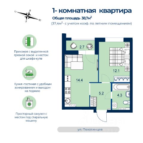 Продаётся уютная однокомнатная квартира на 8 этаже, площадью 38,1 кв.м. В квартире просторная кухня и ванная комната, а также застекленная полулоджия. Уникальная особенность - закрытая площадка на этаже, где расположено всего 3 квартиры, что добавляет уюта и уединения. Окна выходят во двор, что обеспечивает тишину и спокойствие.
