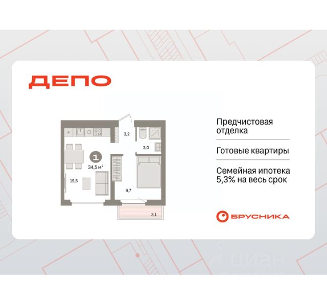 Квартира с кухней-гостиной и одной спальней в квартале "Депо". Особенности планировки: второй санузел, гардеробная, лоджия, мастер-спальня, предчистовая отделка. квартиры в нашей базе: ДЕП04-Ж1.9.4. Квартал "Депо" расположен в активно развивающейся части Сортировки, на месте, где раньше был завод "Электротранс". Преимущества Сортировки — развитая инфраструктура. В пешей доступности — супермаркеты, остановки городского транспорта, поликлиники, детские сады, школы, гимназии, торговые центры, автоцентры, рынок с большим и доступным по стоимости выбором товаров, парк РЖД и парк с аттракционами Таганская Слобода. Квартал "Депо" расположен в границах улиц Пехотинцев — Таватуйская — Сортировочная — Новая (проектируется). Благоустройство квартала основано на трёх принципах. Первый — особое внимание к воде. Архитекторы Брусники создадут внутри застройки систему дождевых садов, которые будут фильтровать сток (в том числе с крыш зданий) и снижать нагрузку на ливневую канализацию . Второй принцип — разнообразие. Мы высадим на улицах ивы, липы, яблони разных сортов, спиреи, лапчатку и дерен, а во дворах — березы, липы, черёмухи, пузыреплодник, кизильник и манчжурский орех, который в Екатеринбурге почти не представлен. Третий принцип — зонирование. Центральный бульвар мы насытим площадками для игр детей и спокойного отдыха взрослых, на площади перед детским садом расположим окруженные деревьями плэйхабы, летние веранды кафе, открытое пространство с запоминающимся артом. #z5c8sT