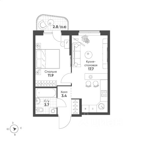 Окна квартиры выходят во двор, лоджия с панорамным остеклением, в подарок новому собственнику останется кухонный гарнитур с варочной поверхностью и духовым шкафом, стол и стулья в гостиной, двуспальная кровать. В доме добрые и приветливые соседи. Закрытый зеленый двор с видеонаблюдением, без машин, с современными детскими и спортивными площадками для любого возраста.