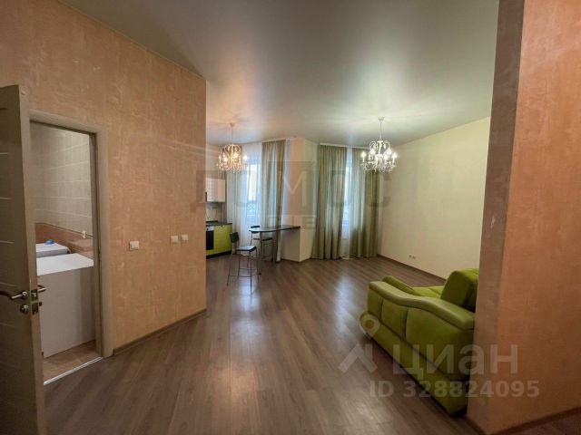 На полу в жилой зоне уложен качественный ламинат 33 кл., на стенах - обои "под покраску" с нанесением интерьерной краски в приятной цветовой гамме, натяжной потолок, установлены межкомнатные двери, все светильники, розетки, выключатели, счетчики на тепло, воду, электроэнергию.