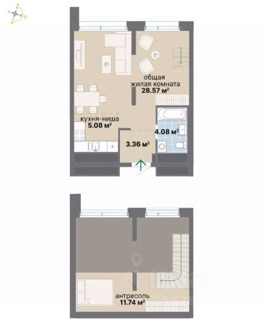 По сути  это евродвушка: Кухня-гостиная - 23 кв.м.,  и спальня  - 9 кв.м., большая лоджия  7 кв.м., совмещённые ванная и туалет. При входе большая прихожая, где разместился встроенный шкаф-гардеробная, которые остаются вам в подарок.