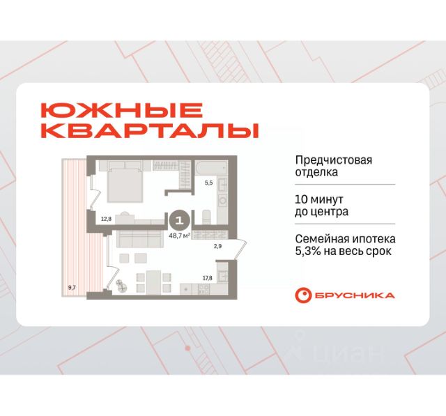 Квартира с кухней-гостиной и одной спальней в Южных кварталах. Особенности планировки: вид во двор, предчистовая отделка, постирочная. квартиры в нашей базе: ЮК04-А1-9-9.22.8. Жилой район "Южные кварталы" расположен в границах улиц Московская, Шаумяна и Фурманова, недалеко от автовокзала. До центра города — 10 минут на автомобиле. До станции метро "Чкаловская" — 15 минут пешком. Рядом находится парк, школа олимпийского резерва, несколько гимназий, лицей, детские сады и городская больница. "Южные кварталы" — проект комплексного редевелопмента территории, разработанный архитекторами Брусники совместно с голландскими бюро. Он разделен на несколько частей, каждая из которых имеет свой характер. Вдоль оживленной Московской появятся более высокие и крупные дома. Профиль спокойной и очень зелёной Шаумяна сформируют кварталы среднеи этажности. В глубине района мы расположим урбан-виллы, чуть дальше — башни-доминанты. Последние будут играть роль визуальных акцентов и впоследствии станут символами этого места. Ближе к Фурманова мы организуем образовательный кластер. Его составят два детских сада на 300 и 325 мест и школа, рассчитанная на 1500 учеников. Школа будет иметь спортивную зону, которая станет доступна и жителям района. Свяжет территорию сеть общественных пространств. Её центральным звеном станет зелёный променад, проходящий сквозь весь район и соединяющий его с парком 50-летия ВЛКСМ. #zmZBuZ